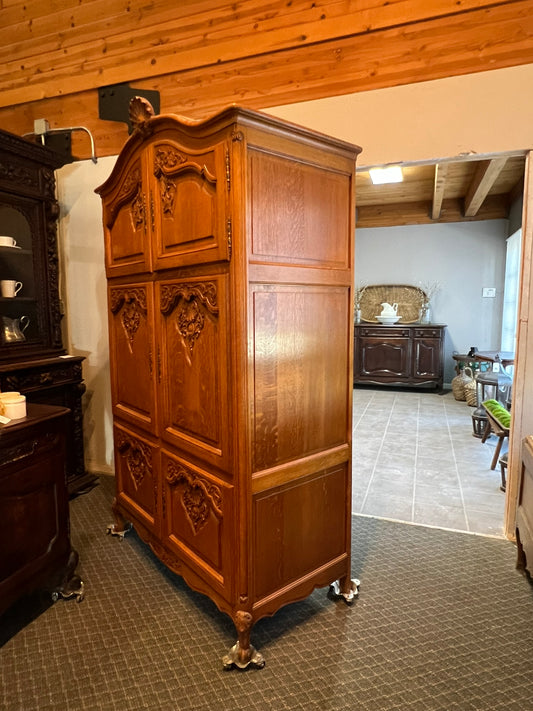 Vintage French Normandy Oak Desk with Carved Detailing and Storage