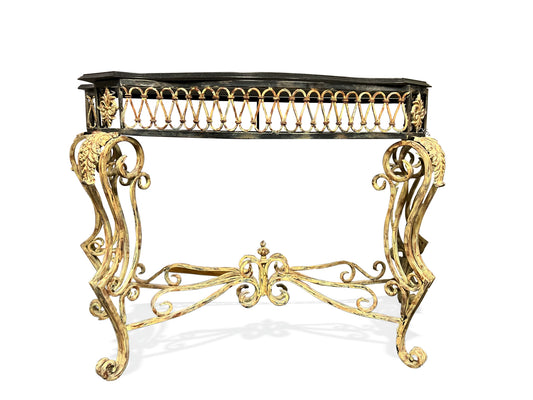 French Bistro Table with Cast Iron Base and Solid Oak Top