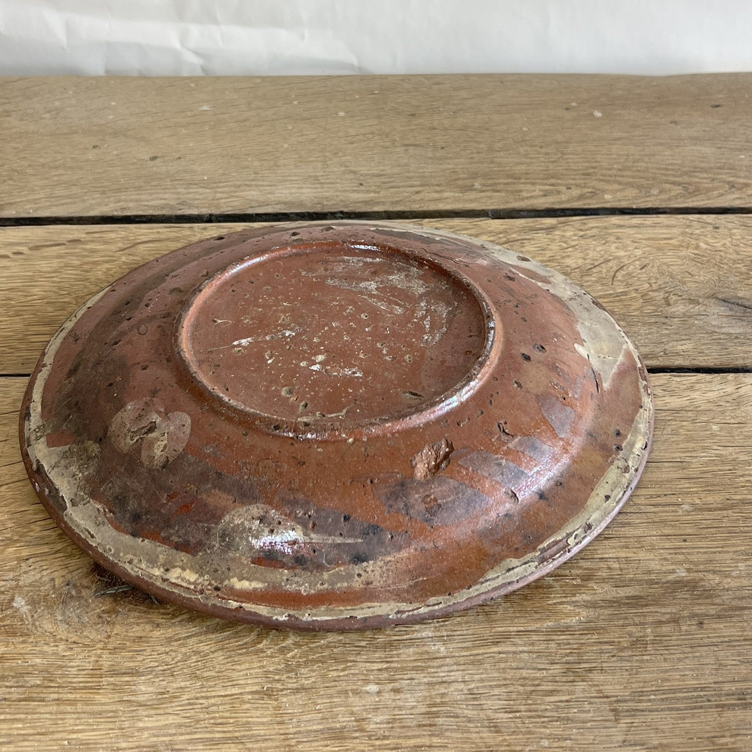 Antique French Terracotta Plate – Rustic Glazed Farmhouse Pottery #08