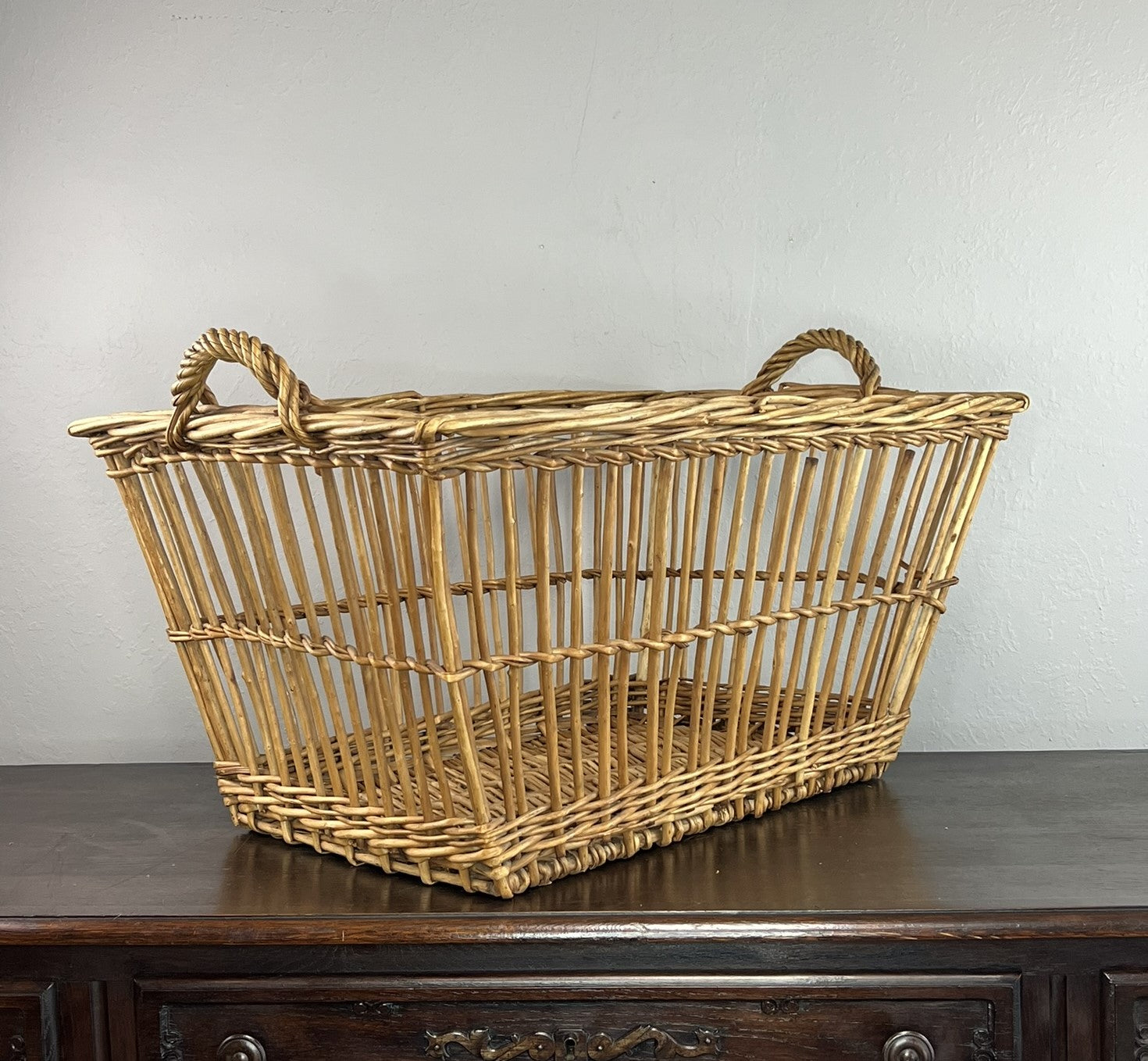 Vintage French Wicker Laundry Basket – with Handles #6522