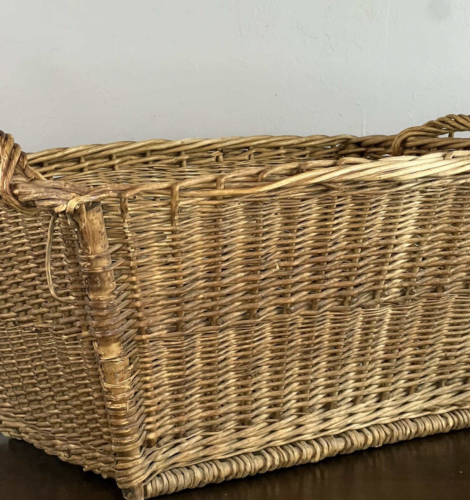Vintage European Wicker Launrdy Basket with Twisted Handles #527