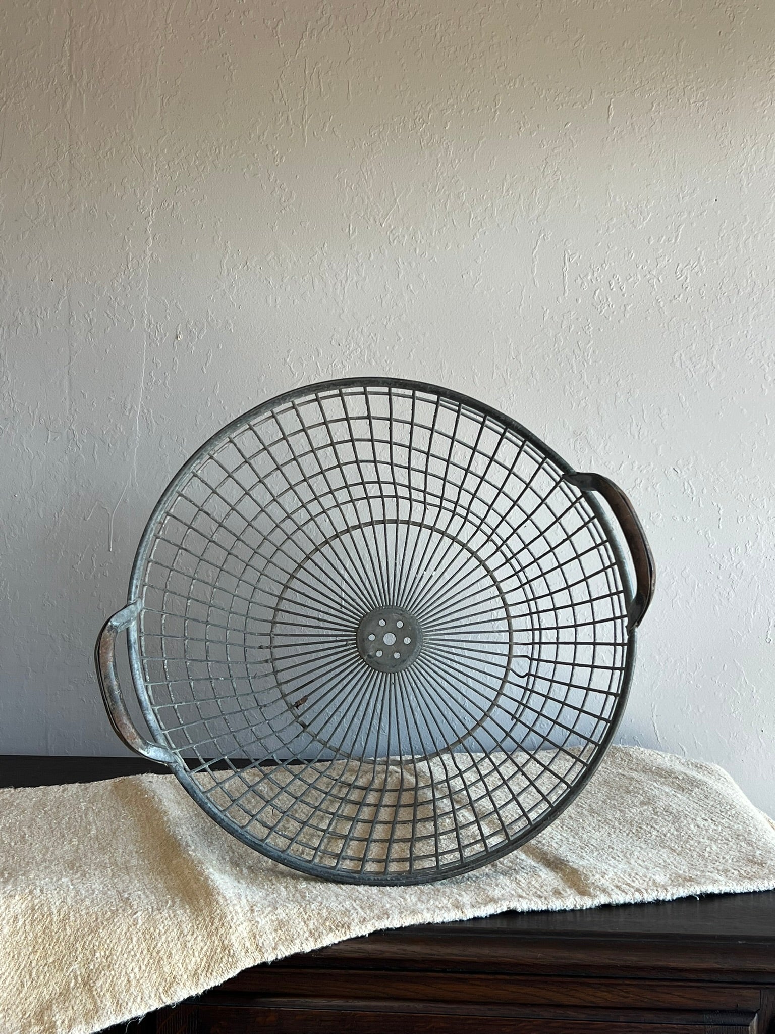 Vintage Hungarian Metal Apple Basket – Rustic Farmhouse Storage