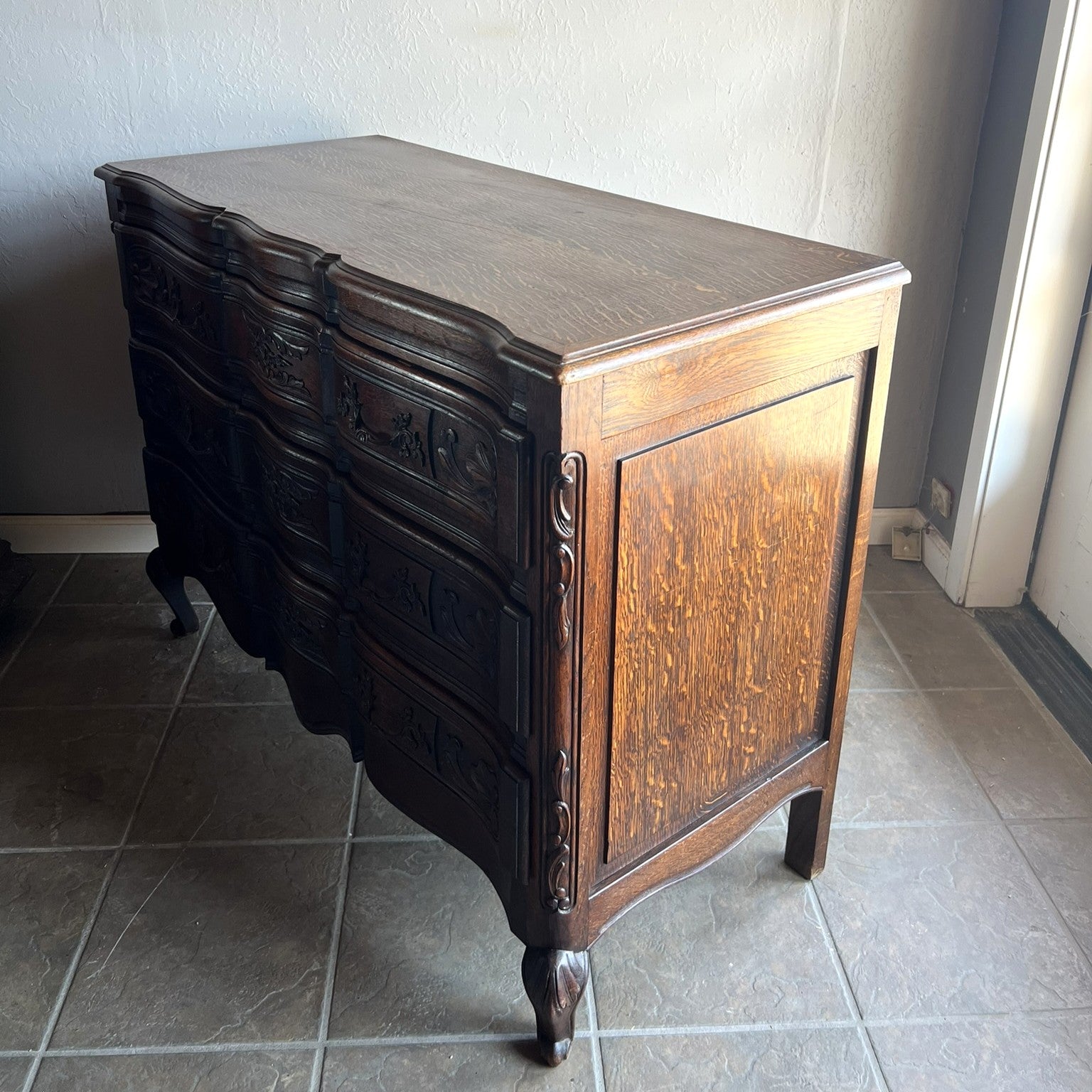 Vintage French Oak Dresser with Carved Details and Serpentine Front