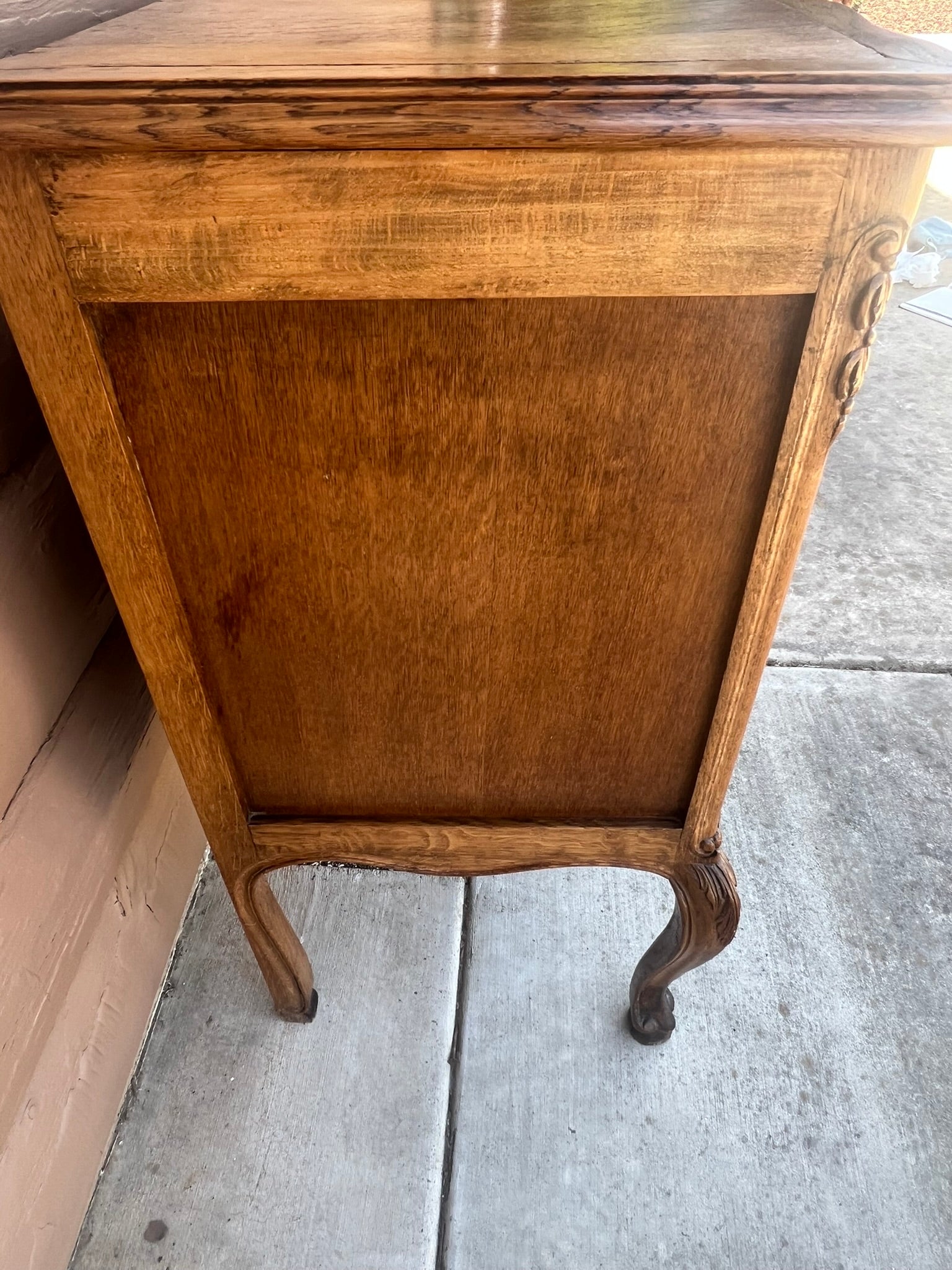 Add timeless European charm to your home with this vintage Belgian small chest of drawers. Crafted from solid wood in the Louis XV style, it features elegant cabriole legs, an open display shelf, and two deep drawers with ornate brass handles. Perfect as a nightstand, side table, or accent piece. Ideal for French Country, farmhouse, or traditional interiors.