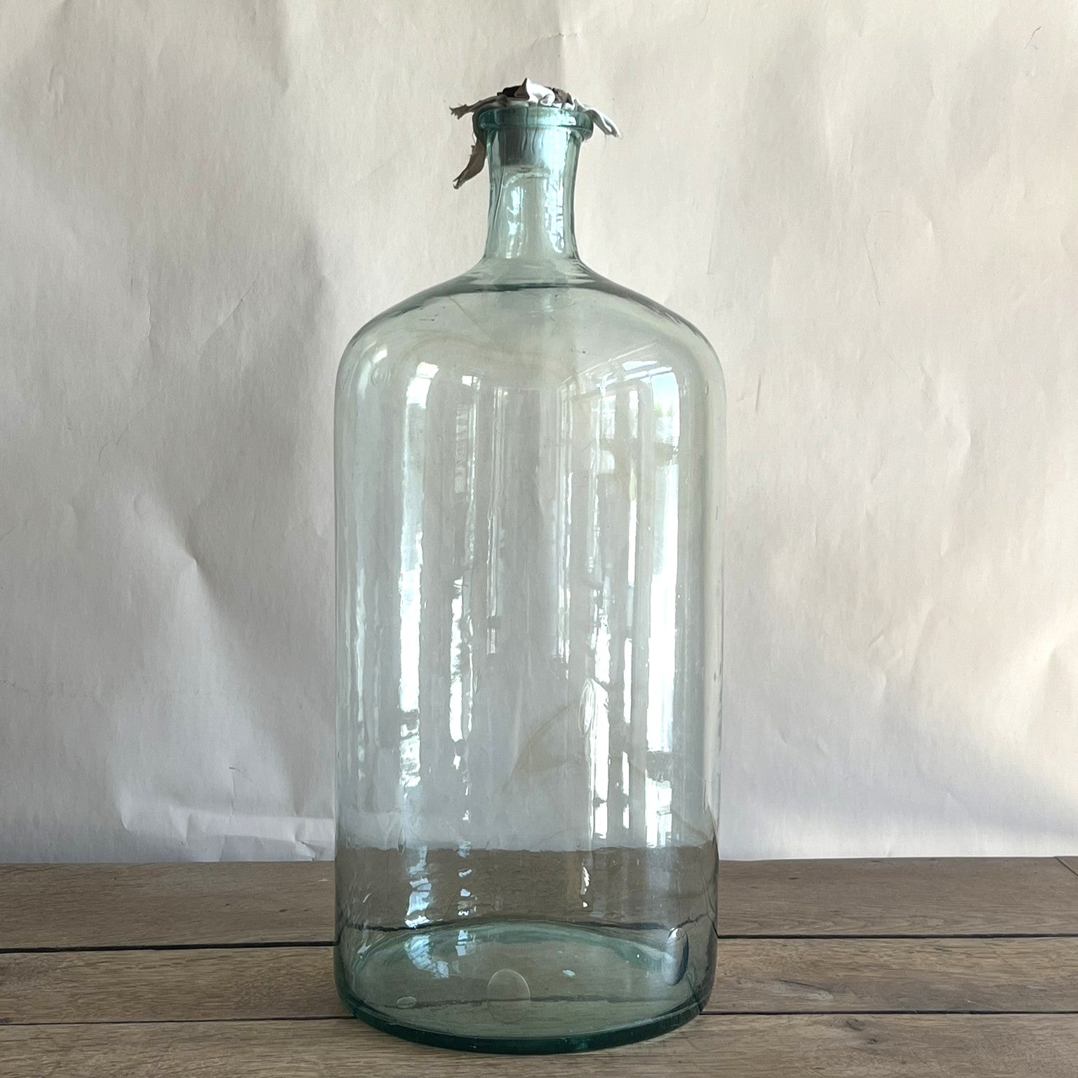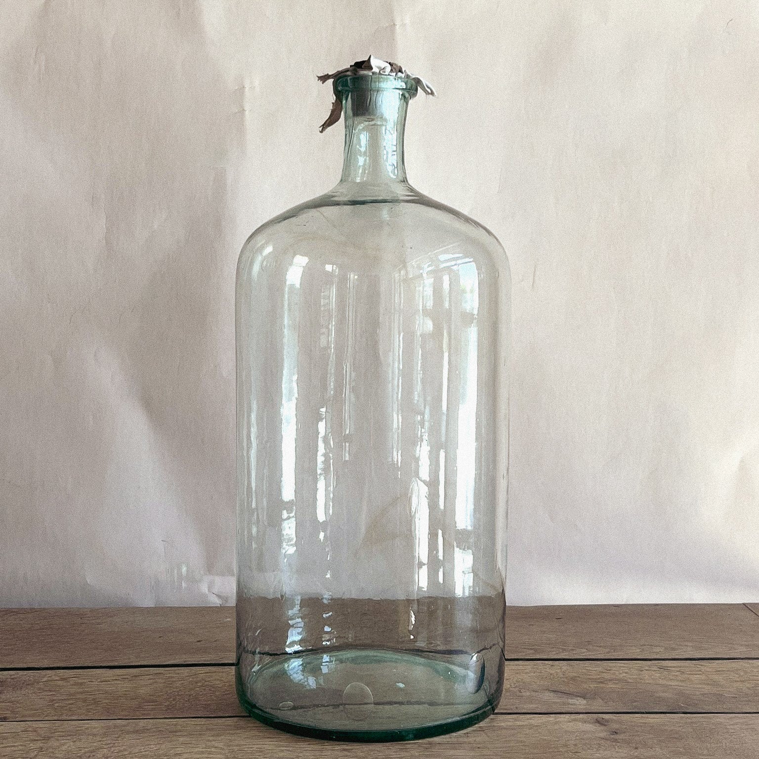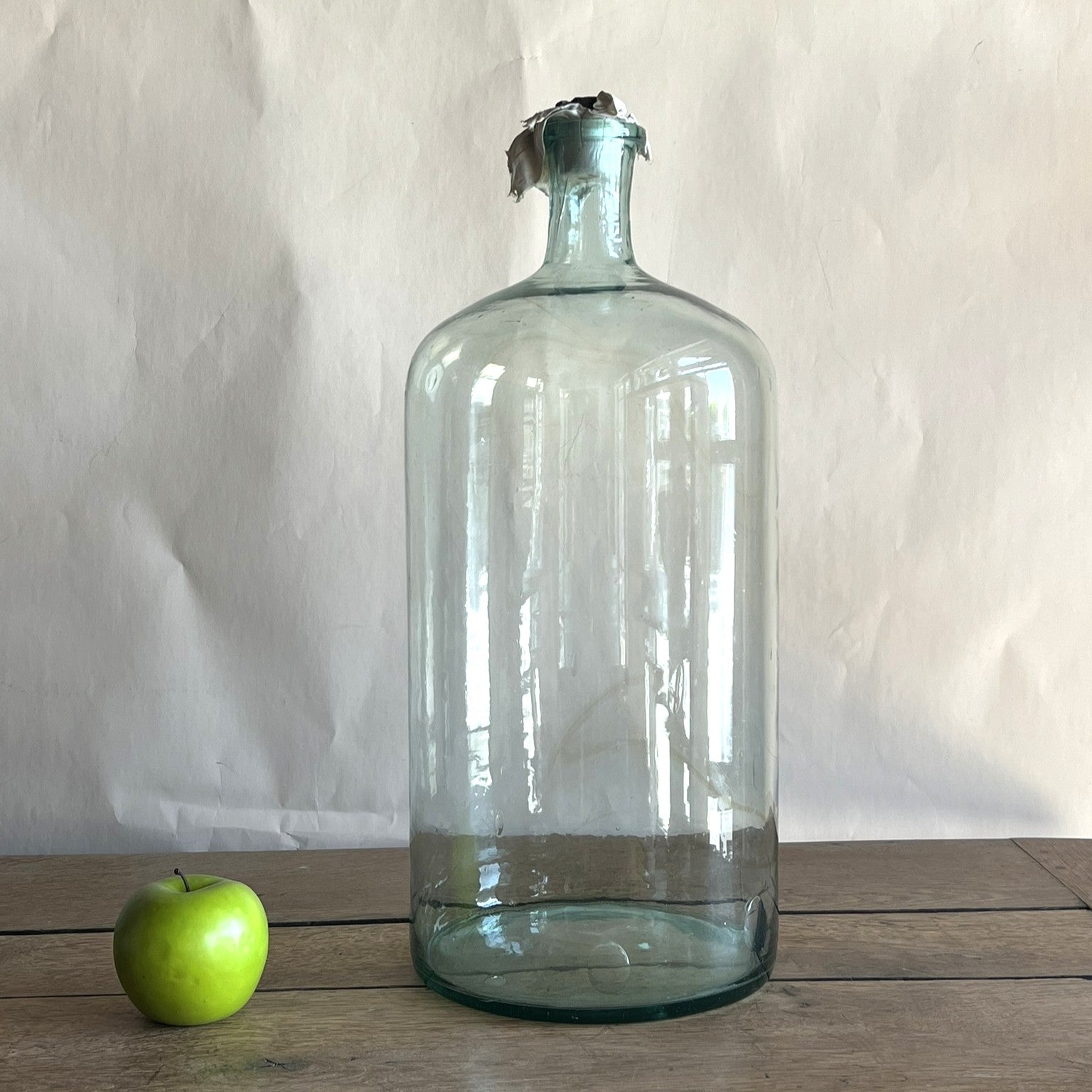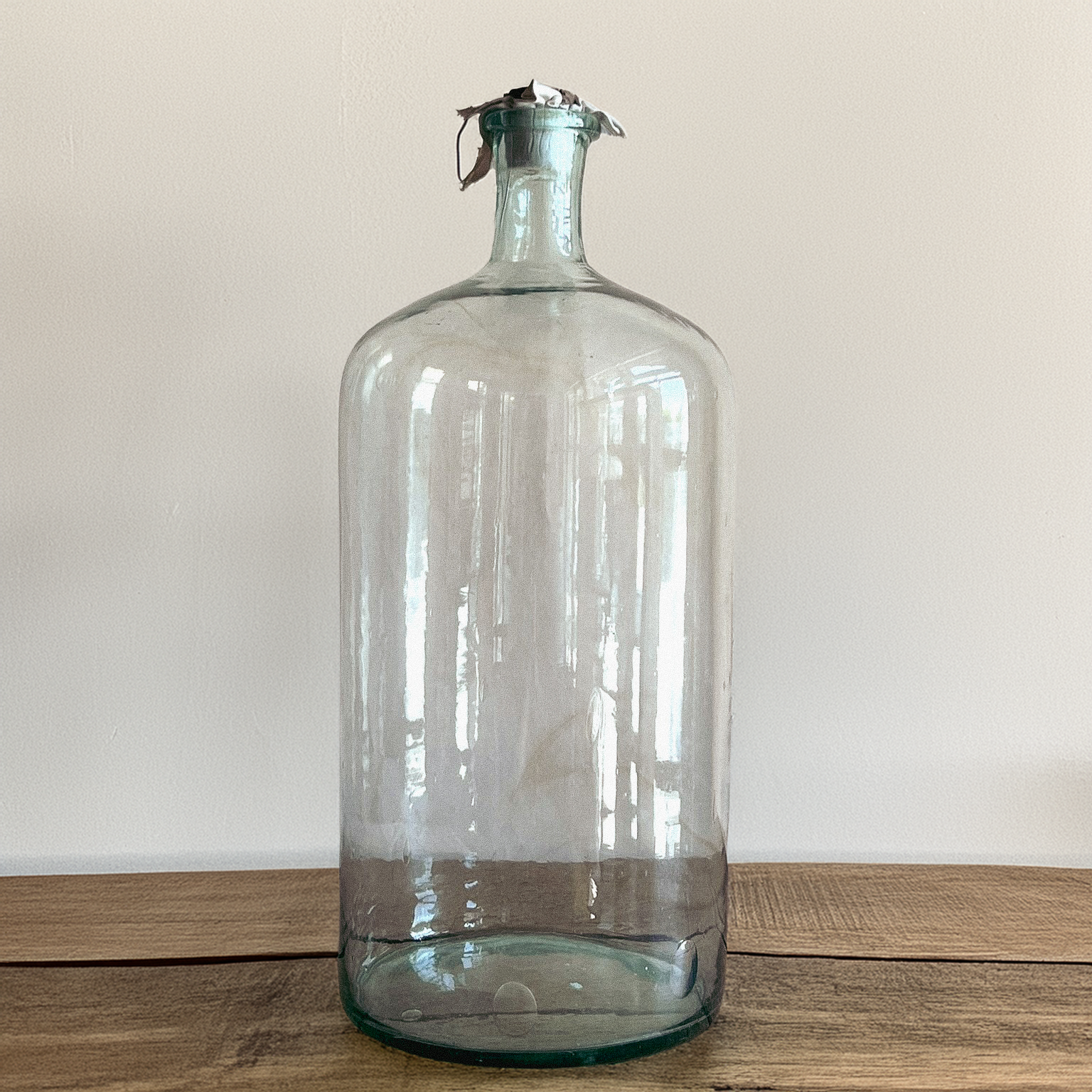 Clear Apothecial Tall Clear Vintage Large Italian Glass Oil Bottle | Handblown Apothecary Vessel | Rustic Farmhouse Decor | Wabi-Sabi Glass Jar | Antique Display Bottle