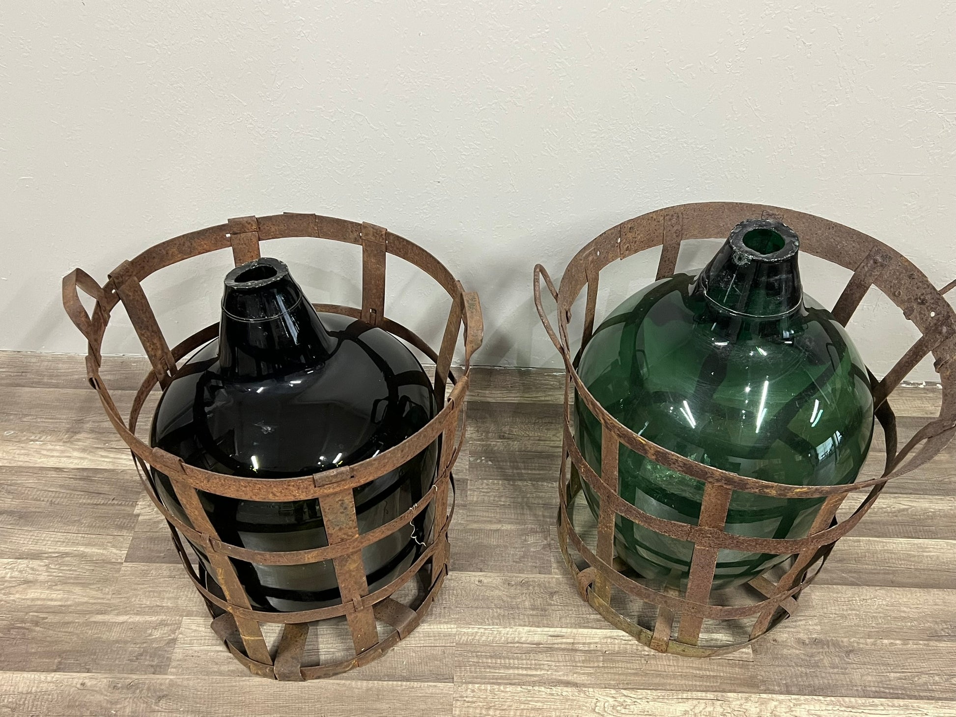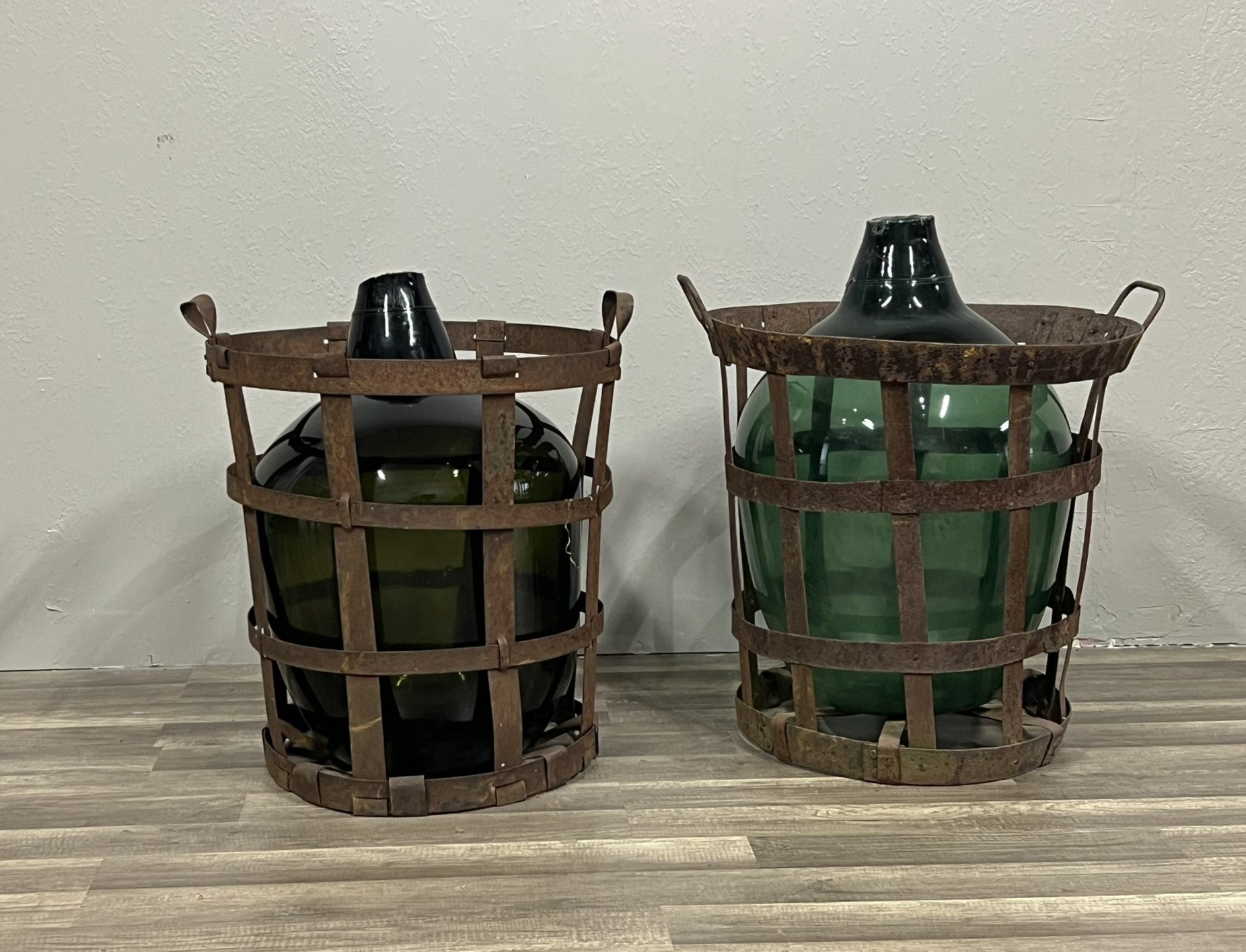 2) Dark Green Demijohn: 25'H x 18" Diameter, Cage 20.5" H x 21.25 Diameter, weight 12 lbs. 4 oz.