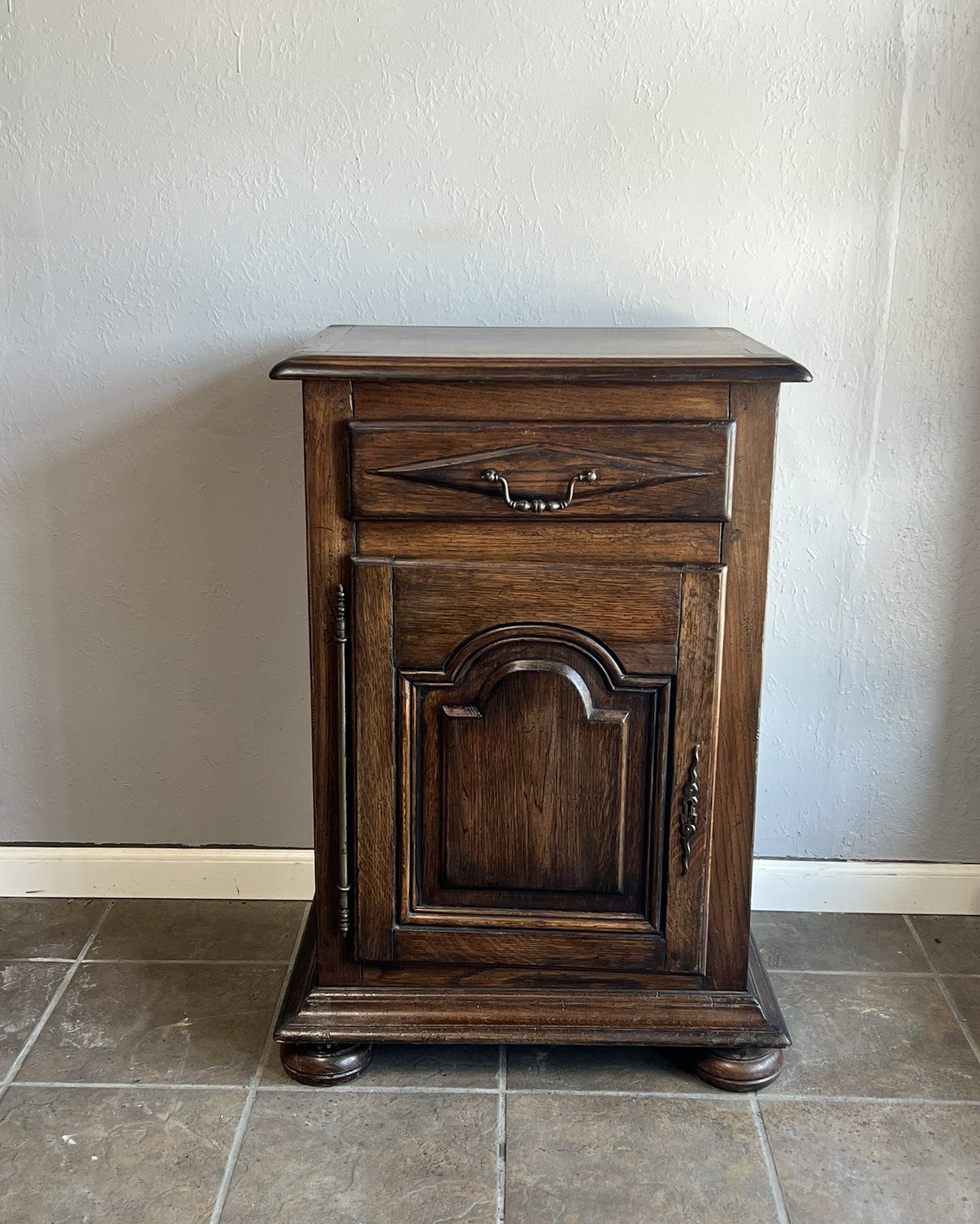 Vintage French Dark Oak Nightstand – Provence Style Bedside Table