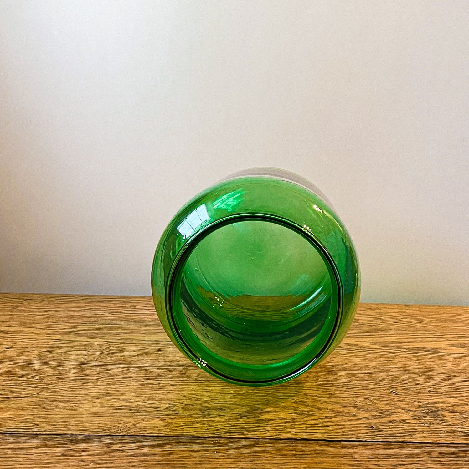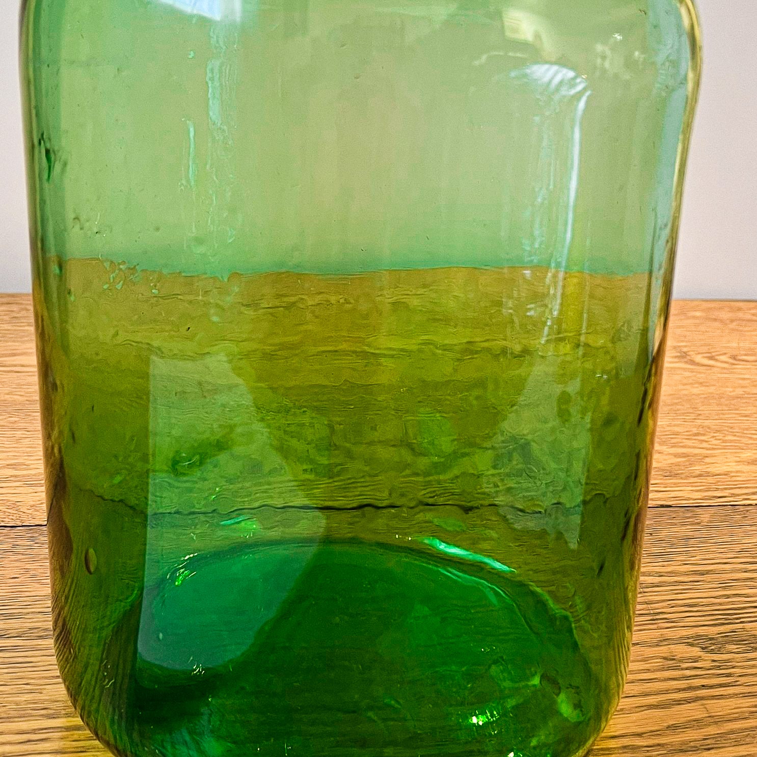 This hand-blown Hungarian jar is a vintage classic, an object of art or unique storage. In the past it was used for pickling vegetables in the pantry, now they are used as a versatile vase or an object of art. Many conventional centerpieces, such as floral arrangements or simple vases, may lack visual appeal. Vases should be versatile enough to suit various occasions, from formal dinners to casual gatherings, while still maintaining a sense of elegance and sophistication. The shimmering beauty of blown glass adds a touch of sophistication and charm to any table setting, or on your kitchen island elevating the overall ambiance of your space.