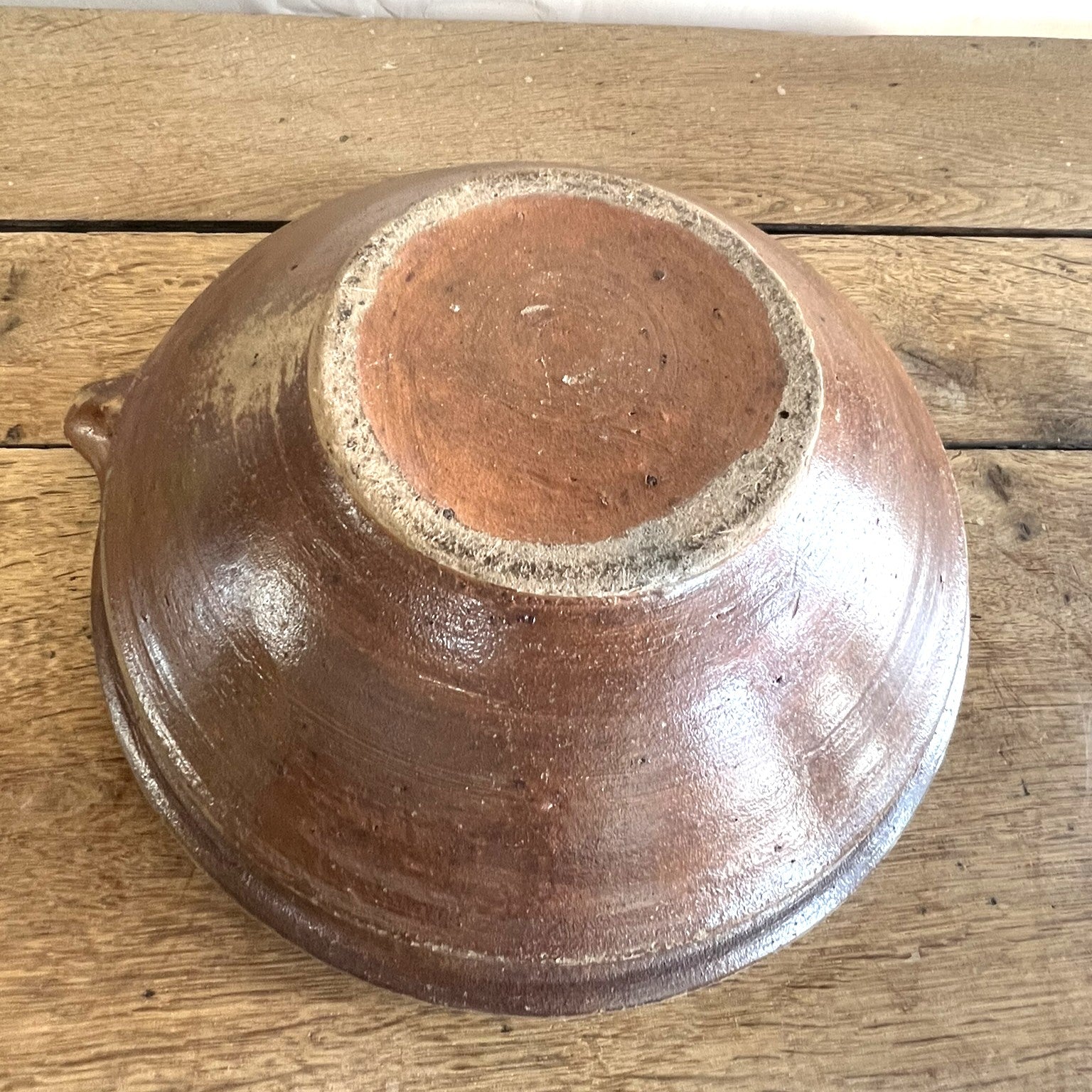 Bring rustic French charm to your home with this antique terracotta bowl, once used in rural kitchens to separate milk from cream. Handcrafted and rich with patina, its warm glaze and simple spout speak to generations of use. Today, it makes a striking centerpiece, perfect for holding fruit, seasonal décor, or simply displayed as an authentic piece of French country history.