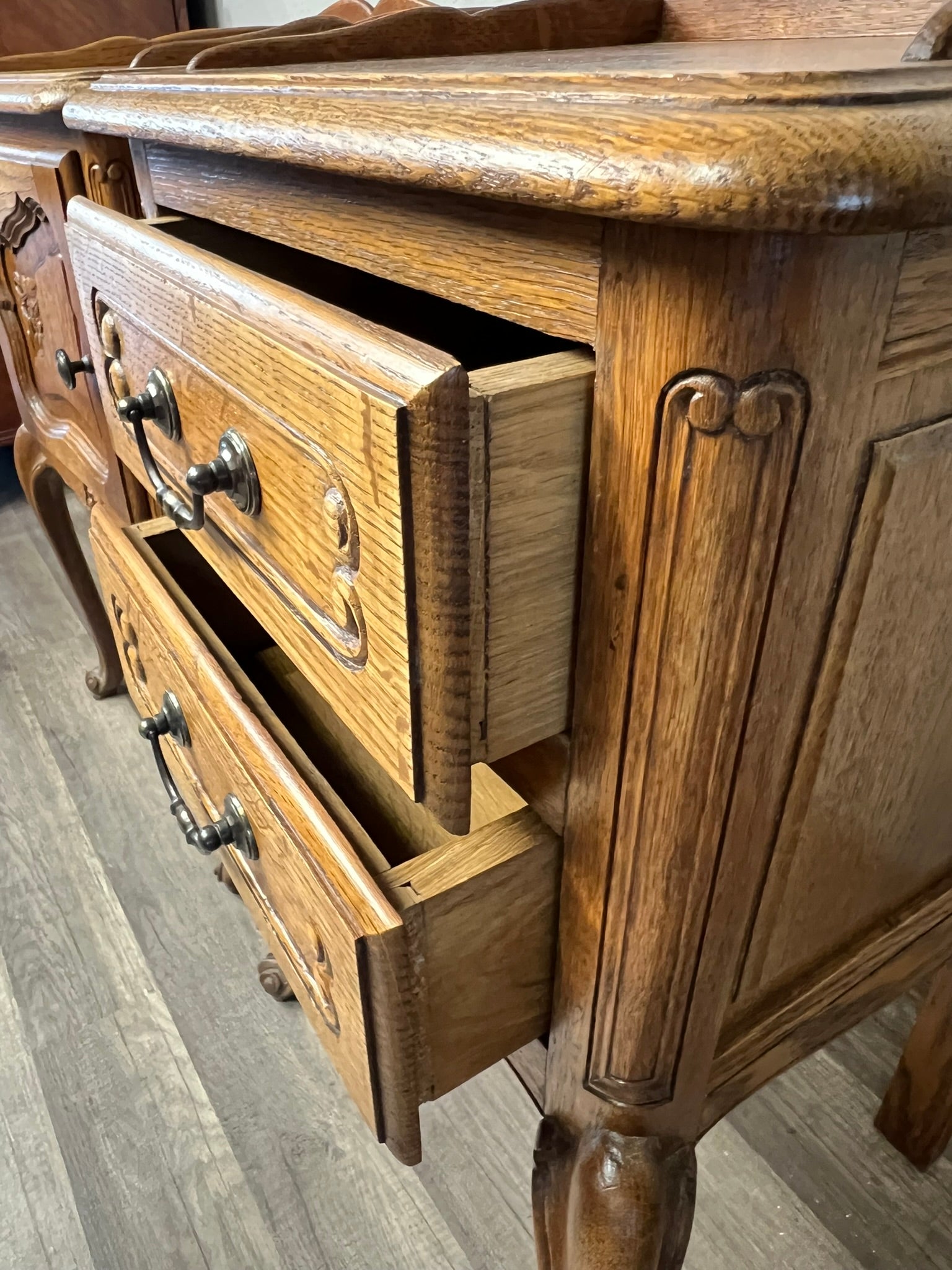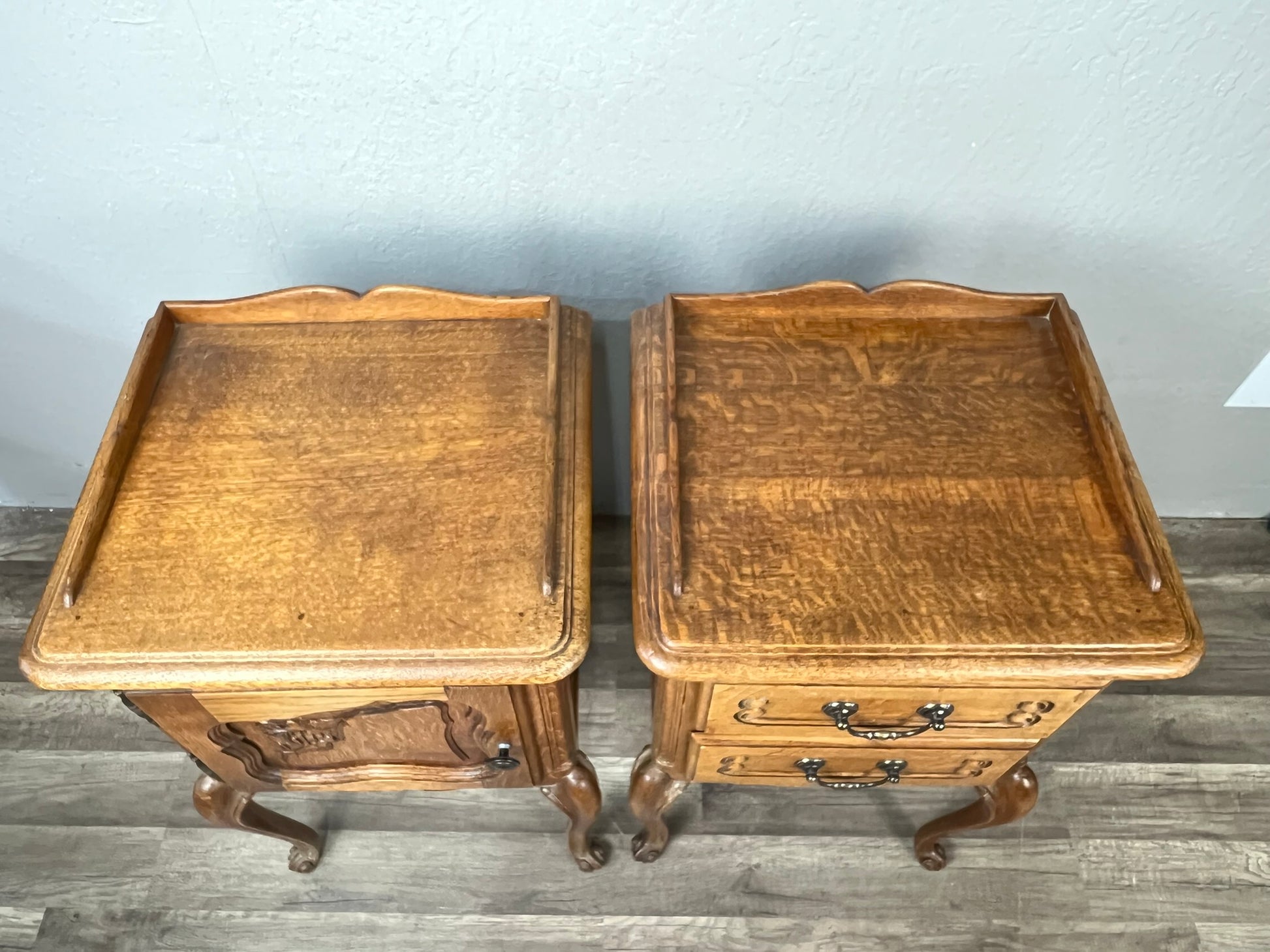 Pair of Vintage Belgian Oak Nightstands – Louis XV Style Bedside Tables with Drawers #643