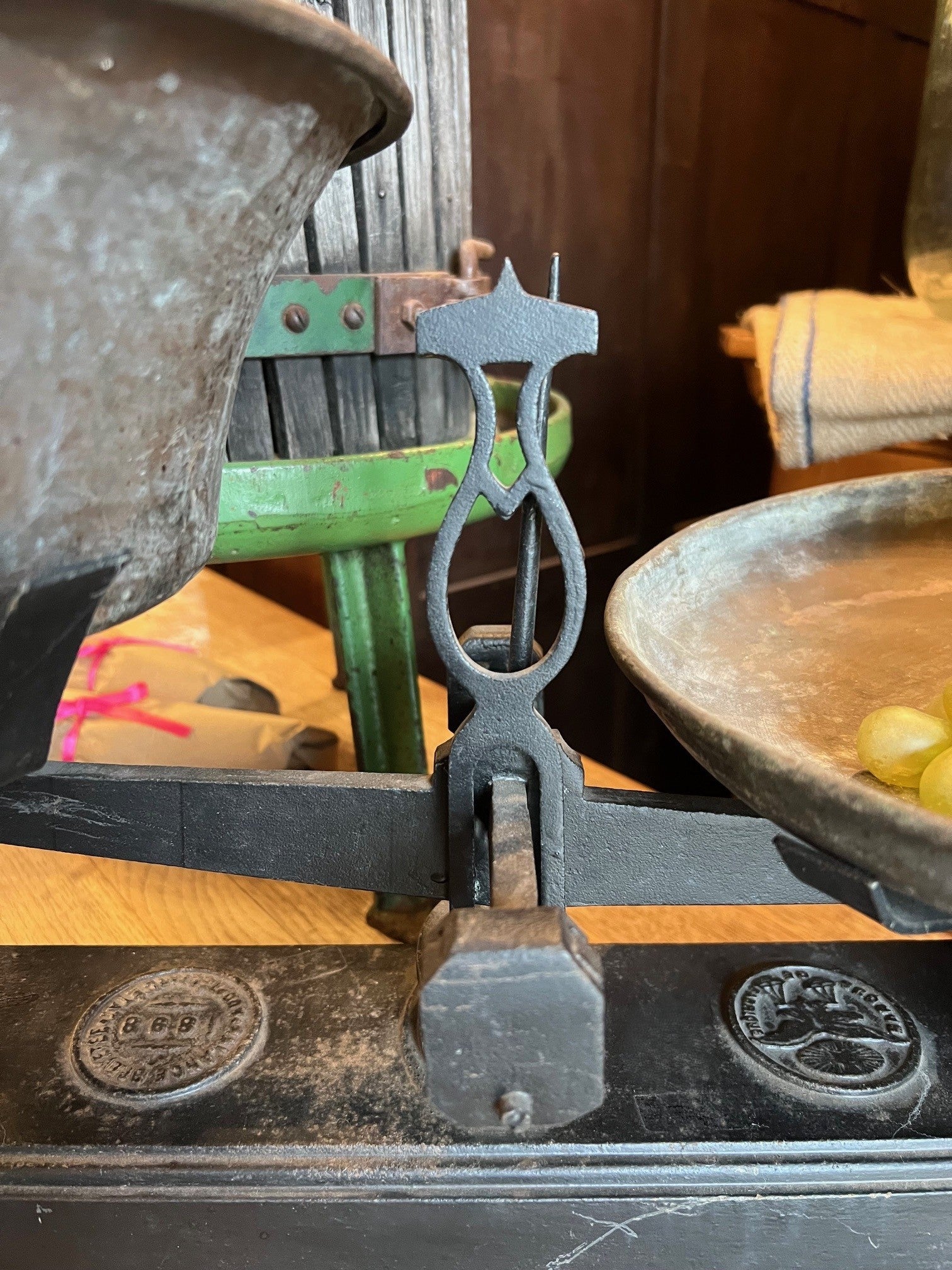 # Vintage European Market Scale - Black Large Weigh your treasures like a Parisian vendor at the turn of the century. This substantial black market scale brings authentic European charm to your kitchen, shop, or collection display. With its sturdy cast-iron construction and classic dial face, it's equal parts functional and nostalgic—perfect for adding character to farmhouse, vintage, or eclectic interiors. Whether you're measuring ingredients or simply admiring its timeless appeal, this oversized scale is a conversation starter that celebrates the beauty of well-made, vintage finds.