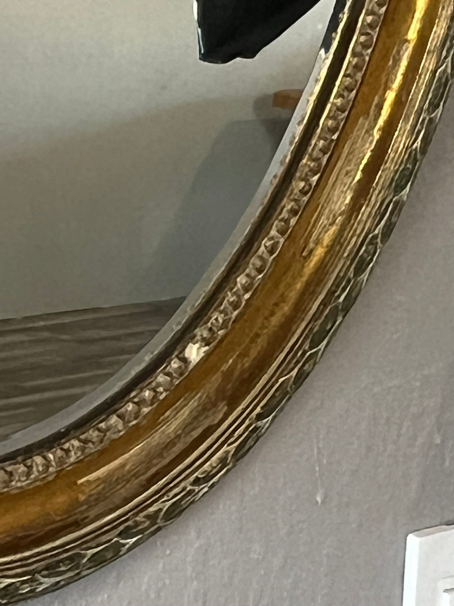 Bring timeless elegance to your home with this vintage European oval wall mirror. Featuring a hand-carved gilt frame with intricate beading, laurel leaf details, and a charming bow-and-wreath crest, this beveled glass mirror radiates old-world sophistication. The aged gold patina and subtle wear enhance its authentic antique appeal, making it perfect for an entryway, living room, or bedroom.